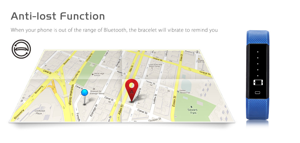 Anti-theft of the phone: The smart bracelet will remind you with vibration when cellphone is beyond 5 meters range.
