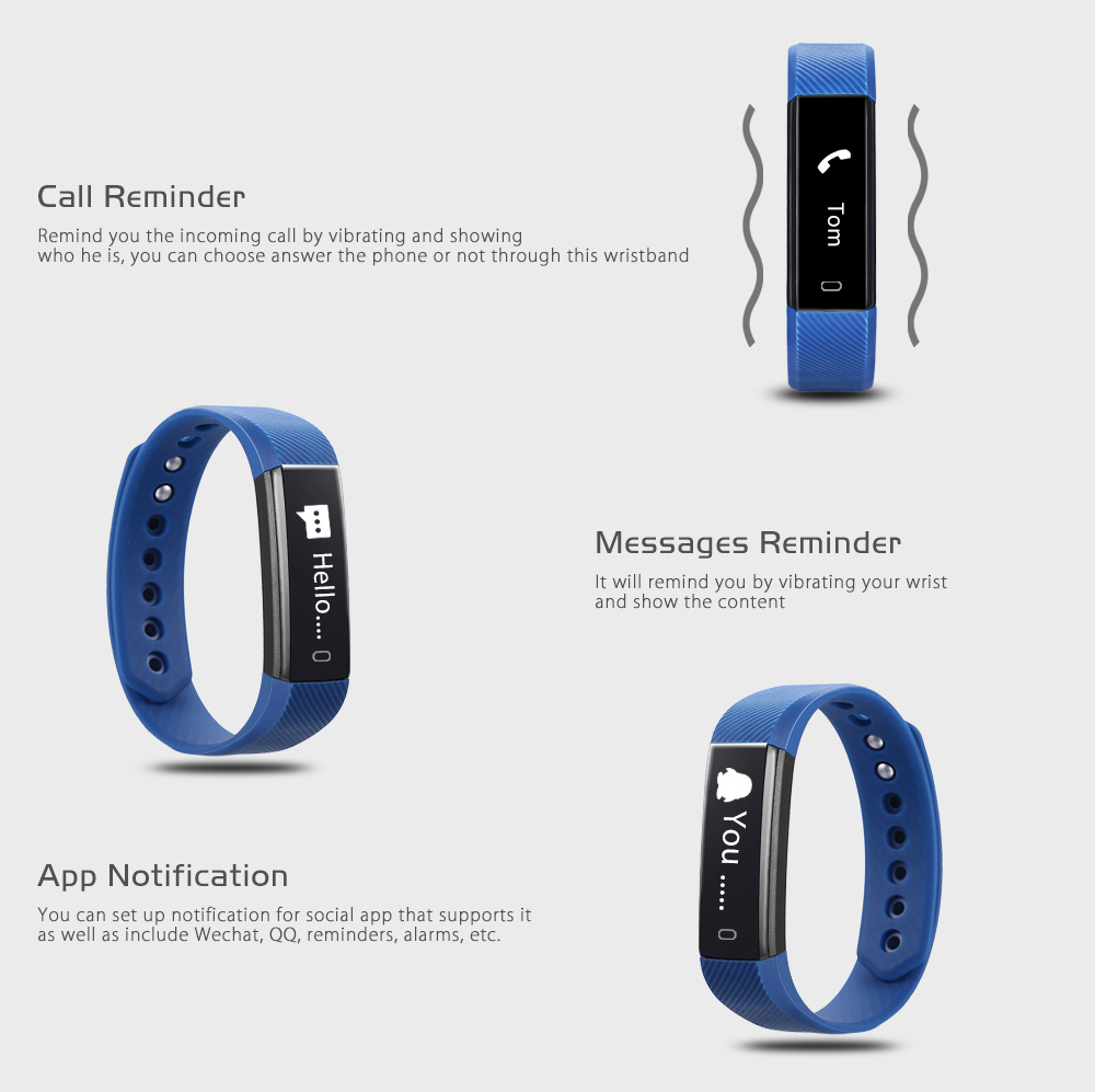 ID115 Smart Bracelet Fitness Watch Alarm Clock Step Counter Smart Wristband Bluetooth Sport Sleep Tracker Monitor Track